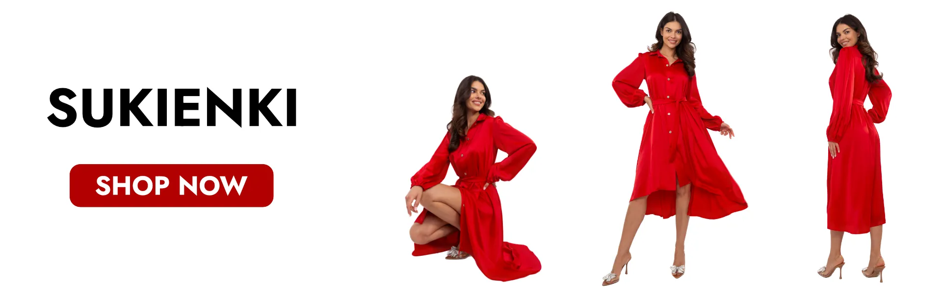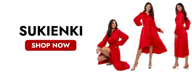 – Sukienki: mini, midi, maxi; koktajlowe, wieczorowe, dzienne, koszulowe; letnie i zimowe.