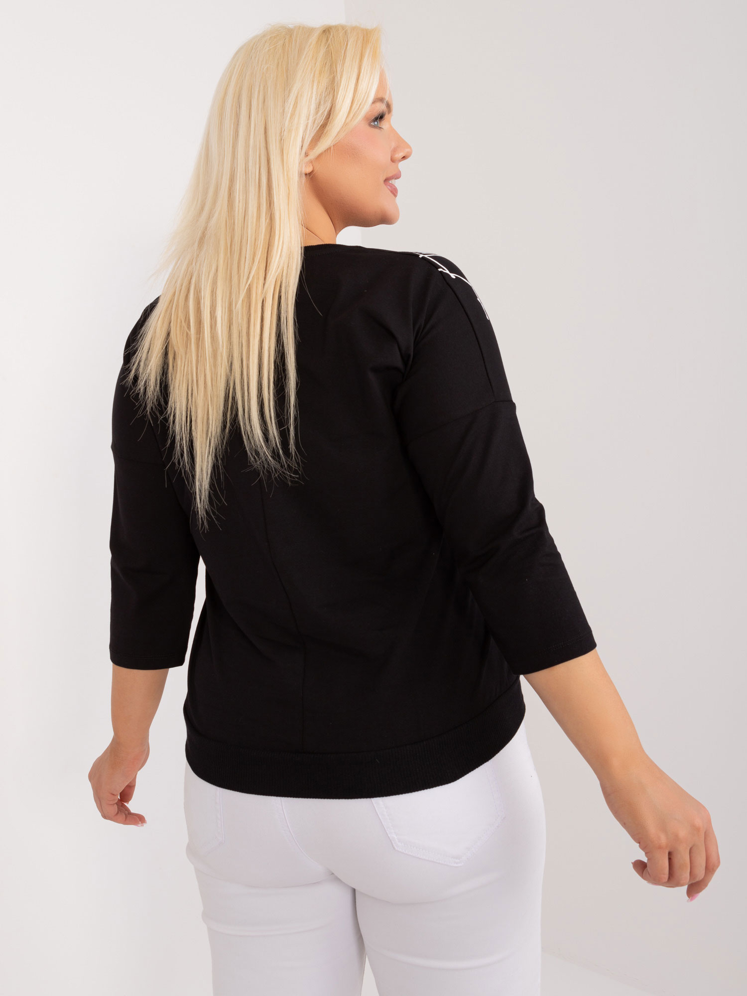 Wymiary bluzki w rozmiarze one size mierzone na płasko: szerokość pod pachami – 62 cm, długość rękawa – 42 cm, długość całkowita – 61 cm.