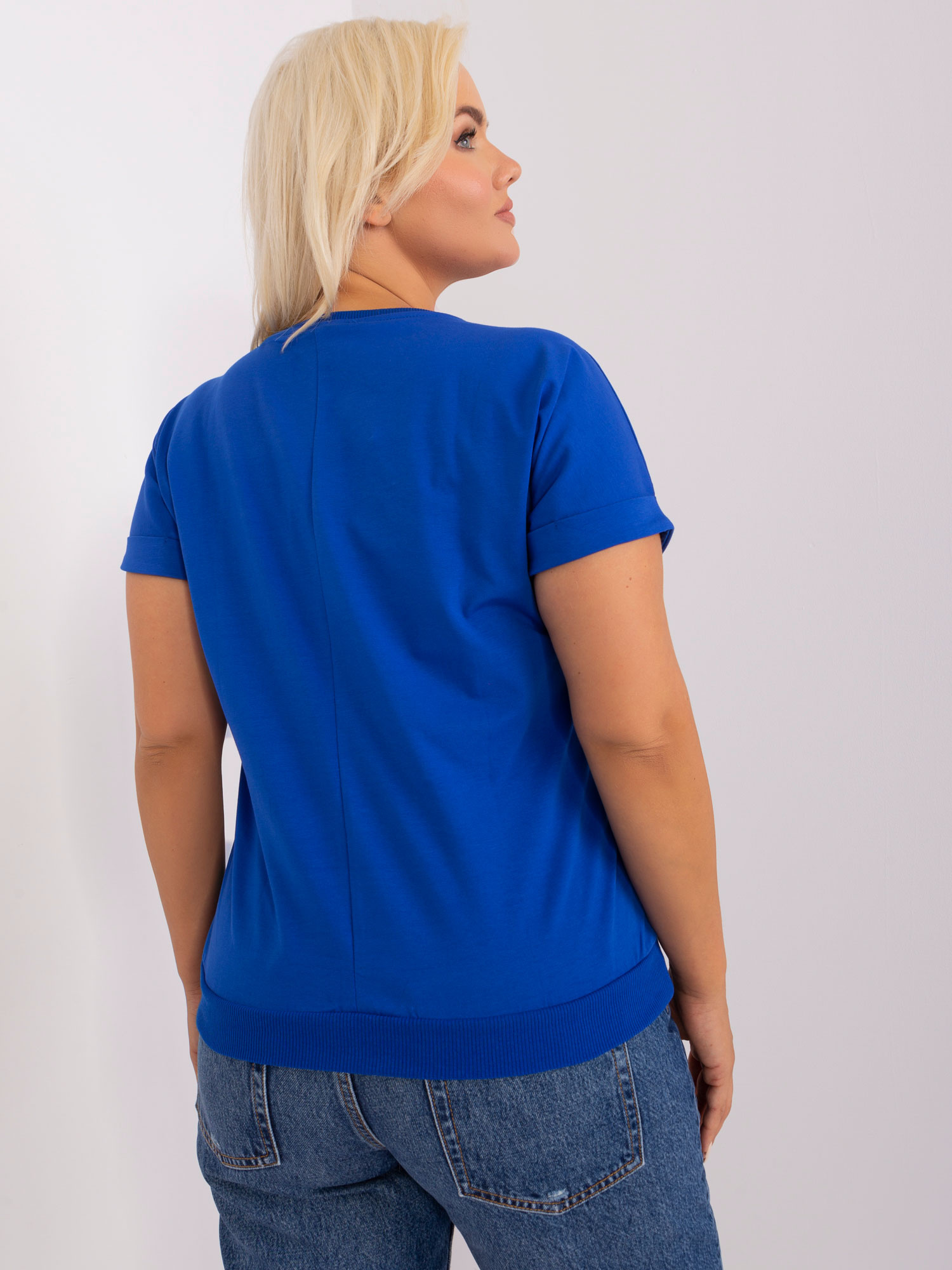 >Kobaltowa bluzka plus size z okrągłym dekoltem .