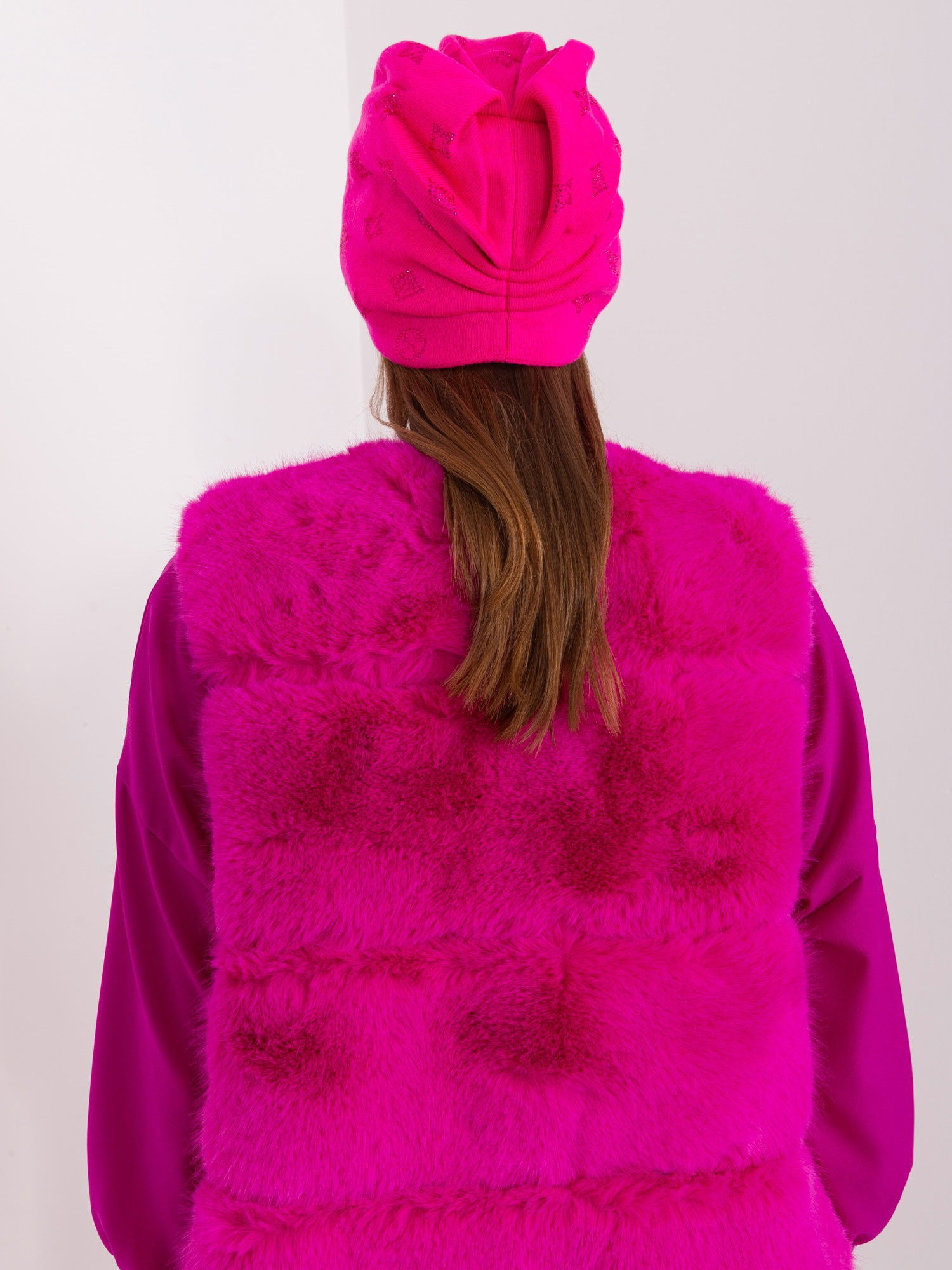 Ciemnoróżowa czapka zimowa z aplikacjami .