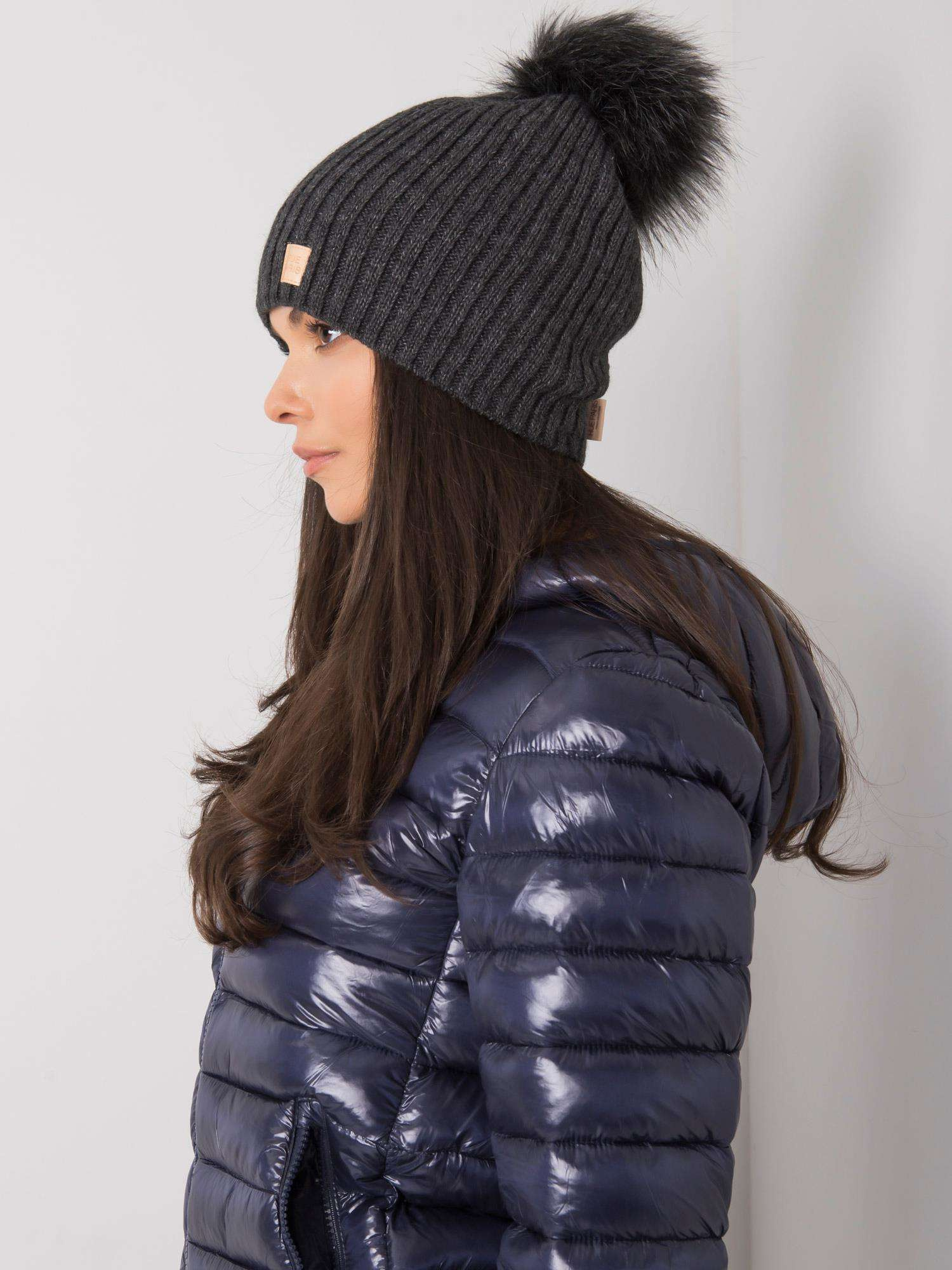 Ciemnoszara czapka z pomponem