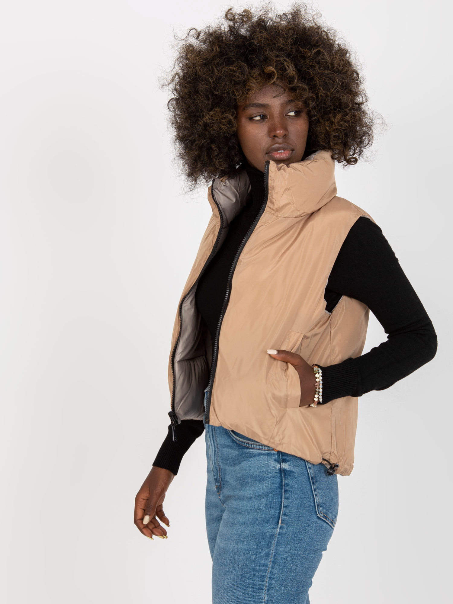 Jasnoszara dwustronna kamizelka puchowa z kieszeniami .