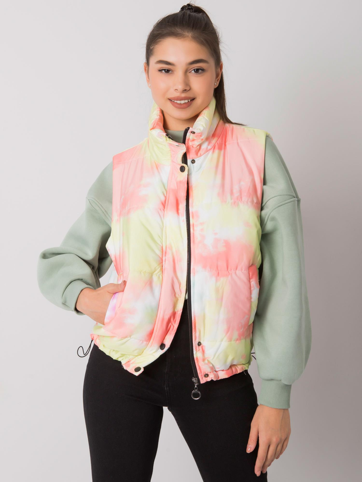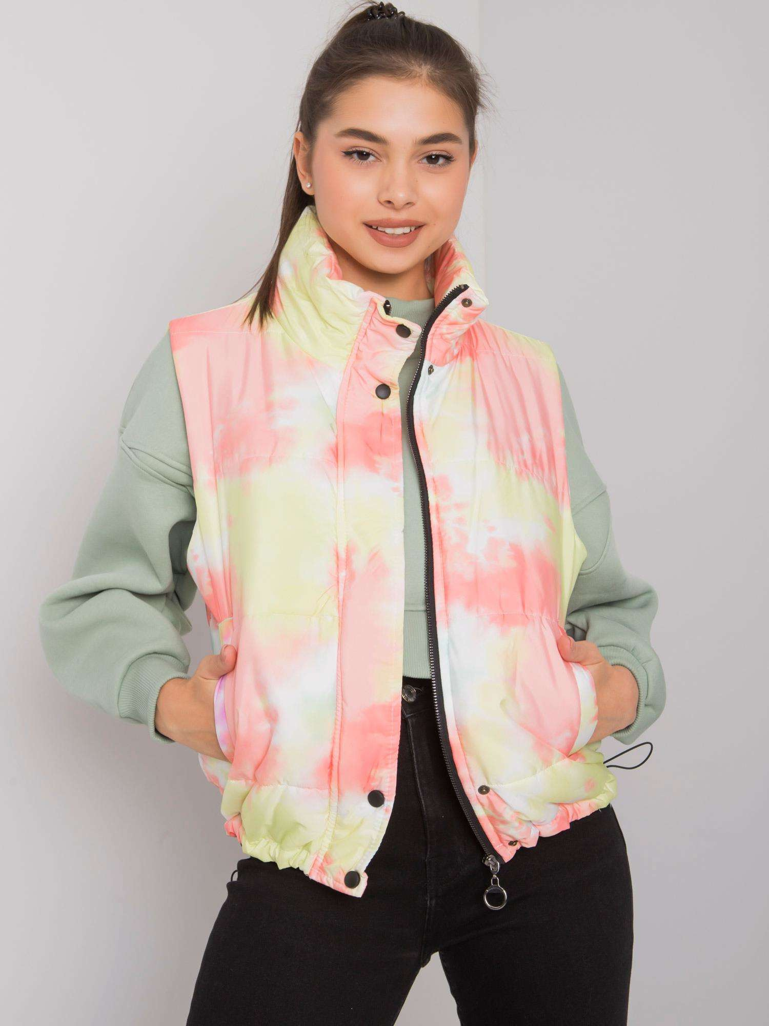 Żółto-pomarańczowa kamizelka bez kaptura.