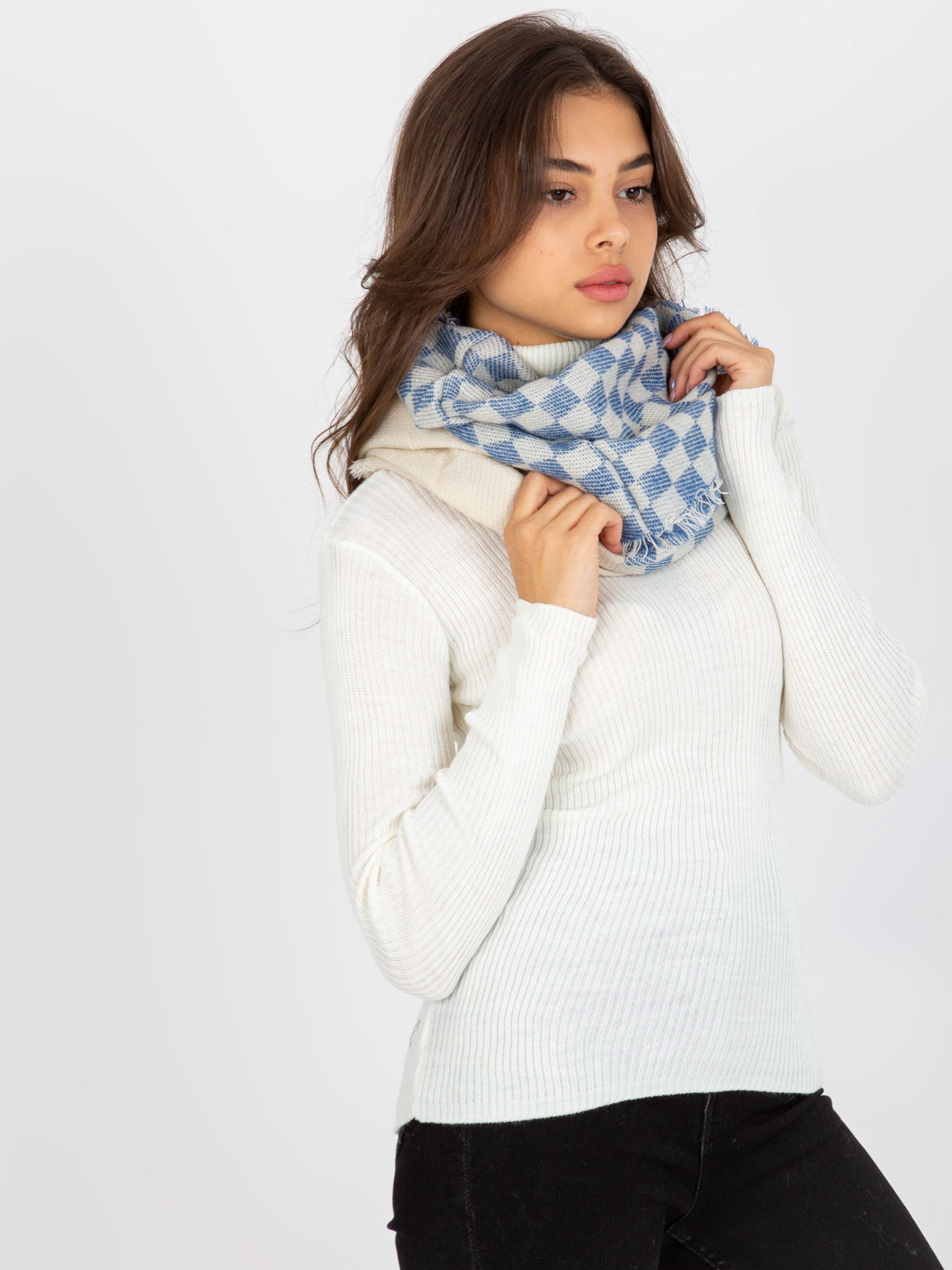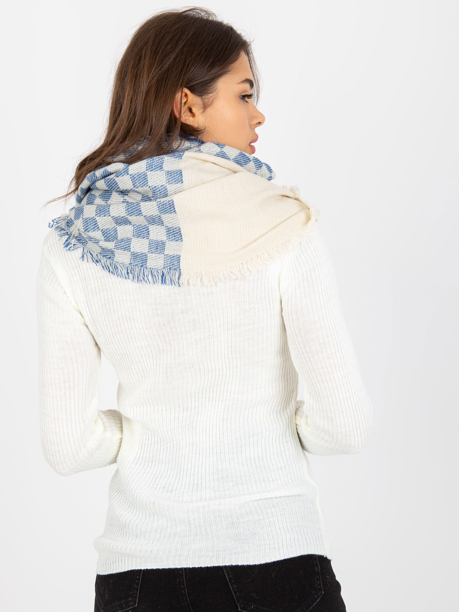 online Ecru-ciemnoniebieski komin damski w kratkę.