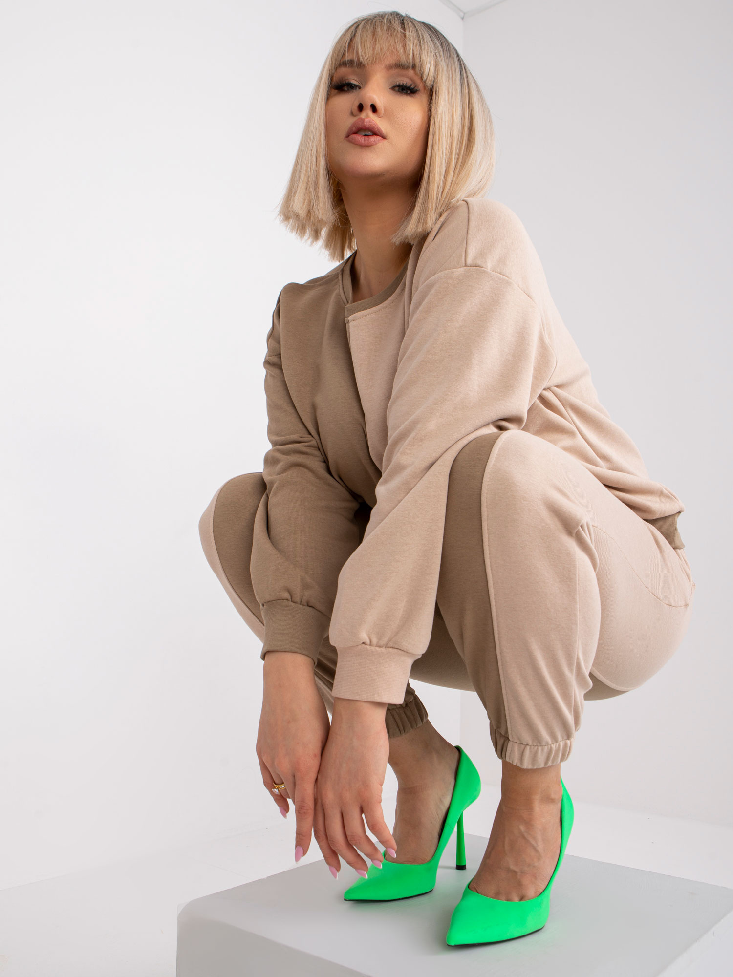 Wymiary kompletu w rozmiarze L/XL mierzone na płasko: szerokość pod pachami – 59 cm, długość rękawa – 59 cm, długość bluzy – 63 cm, szerokość w pasie – 36 cm, długość spodni – 96 cm.