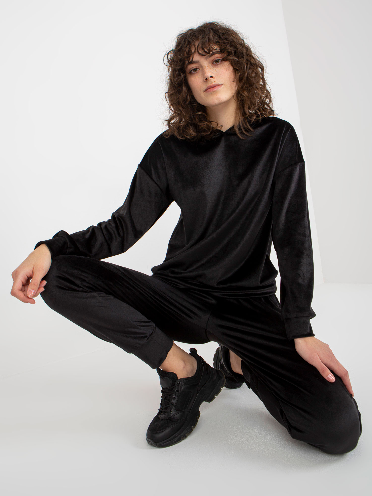 Czarny damski komplet welurowy ze spodniami i bluzą .