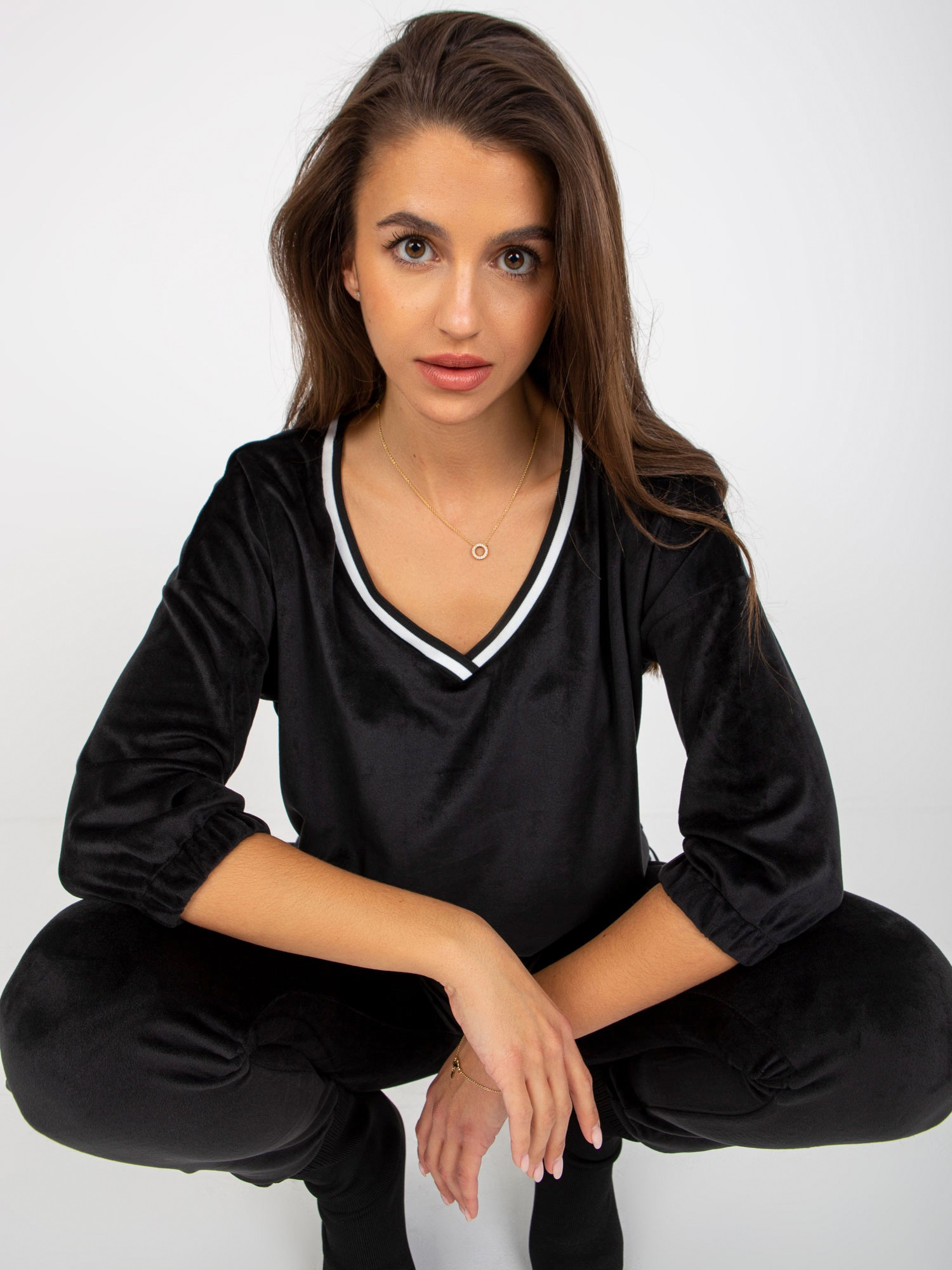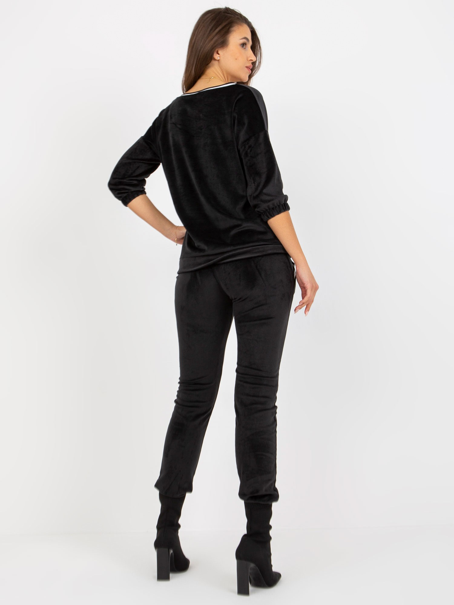 Czarny dwuczęściowy komplet welurowy z rękawem 3/4 .