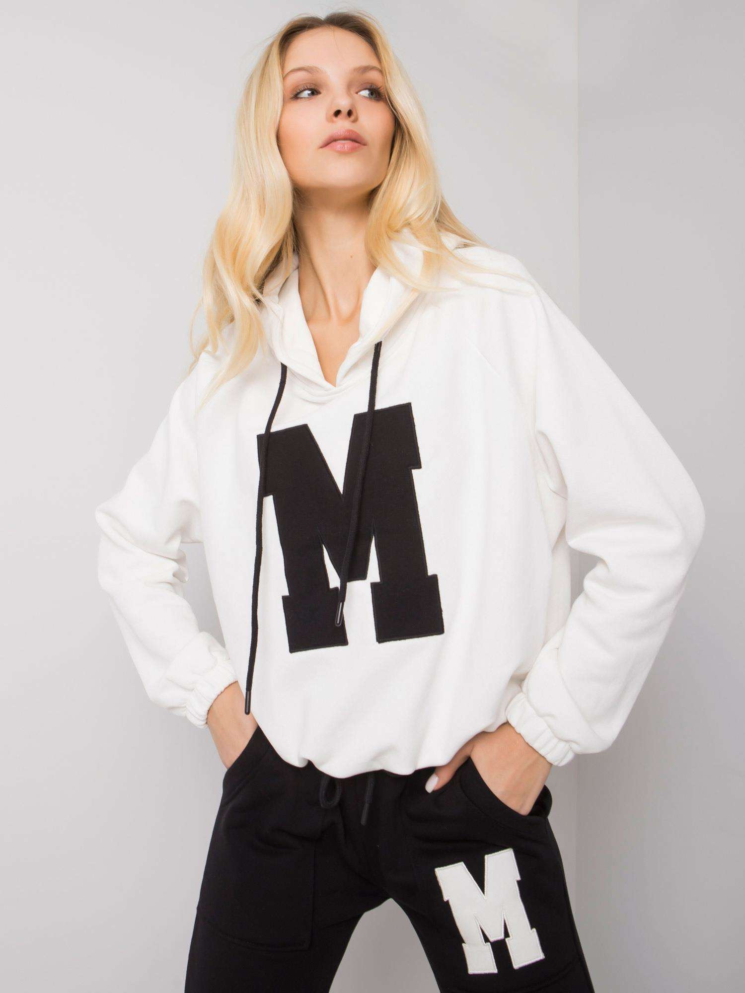 Wymiary kompletu w rozmiarze S/M mierzone na płasko: szerokość pod pachami – 64 cm, długość bluzy – 57 cm, długość rękawa – 64 cm, szerokość w pasie – 36 cm, długość spodni – 98 cm