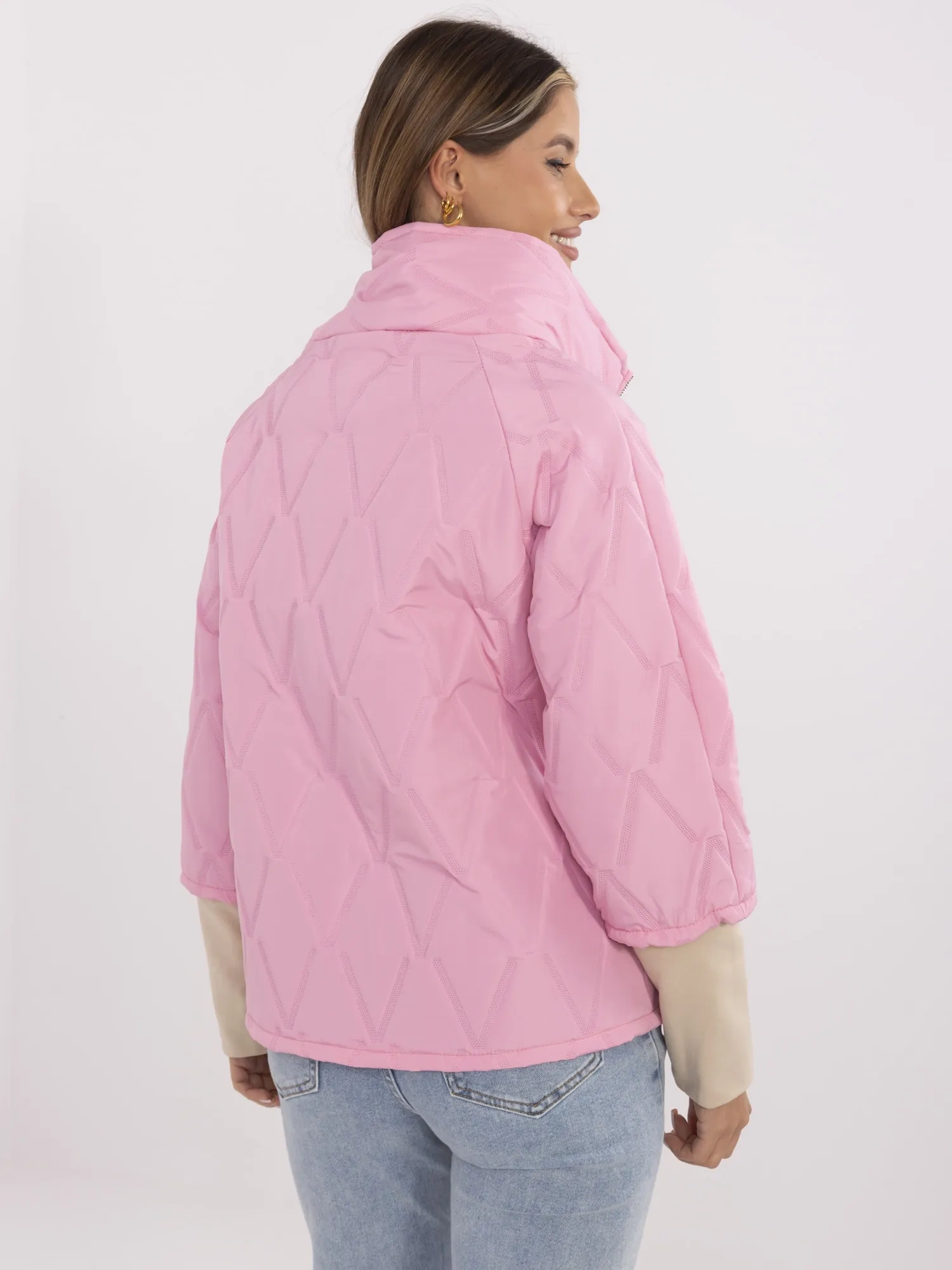 Wymiary kurtki w rozmiarze one size mierzone na płasko: szerokość pod pachami – 55 cm, długość rękawa – 67 cm (od szwu), szerokość w biodrach – 58 cm, długość całkowita – 61 cm.