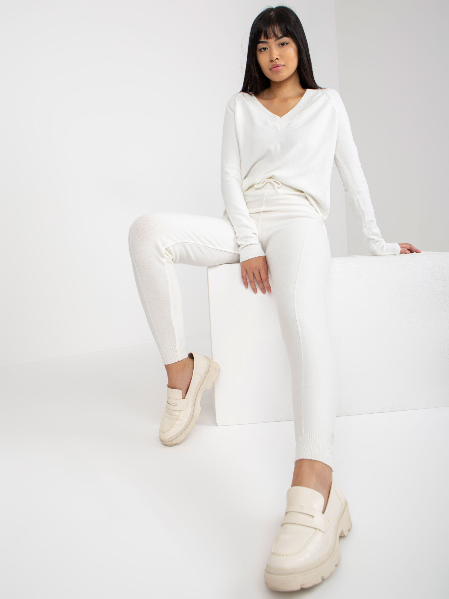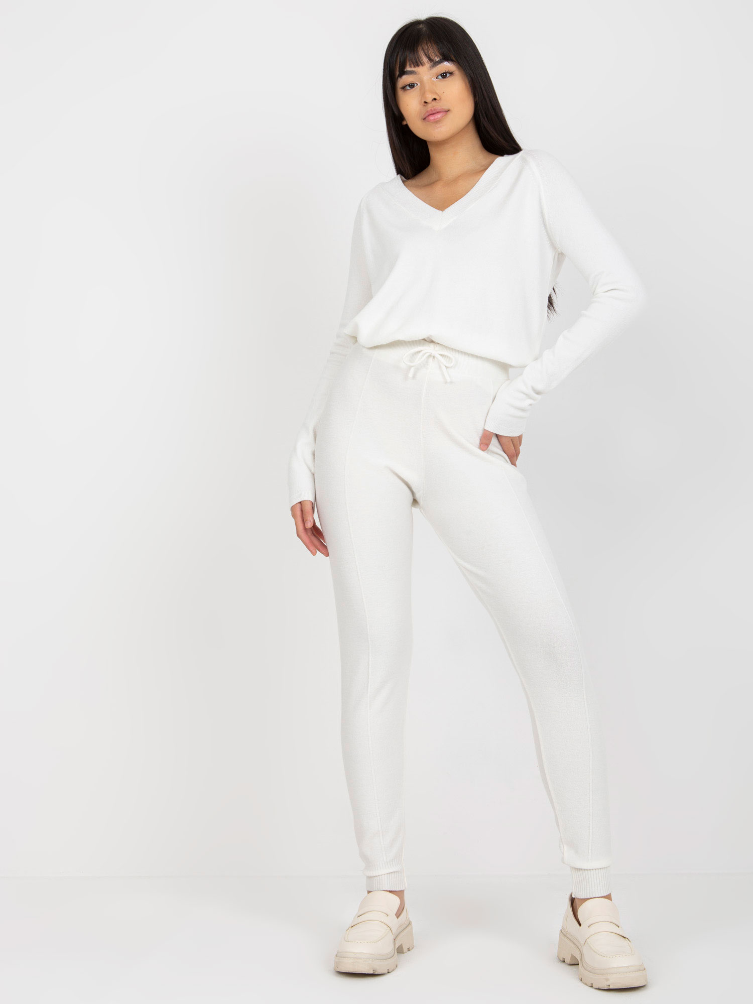 Ecru damskie spodnie dzianinowe ze ściągaczem .