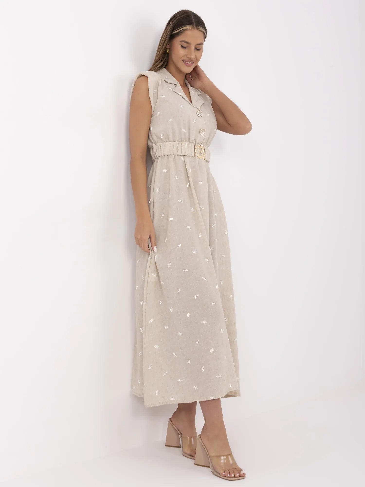 Wymiary sukienki w rozmiarze one size mierzone na płasko: szerokość pod pachami – 57 cm, szerokość w talii – 28 cm (ma płasko), szerokość w talii – 50 cm (po rozciągnięciu), szerokość w biodrach – 62 cm, długość całkowita – 136 cm.
