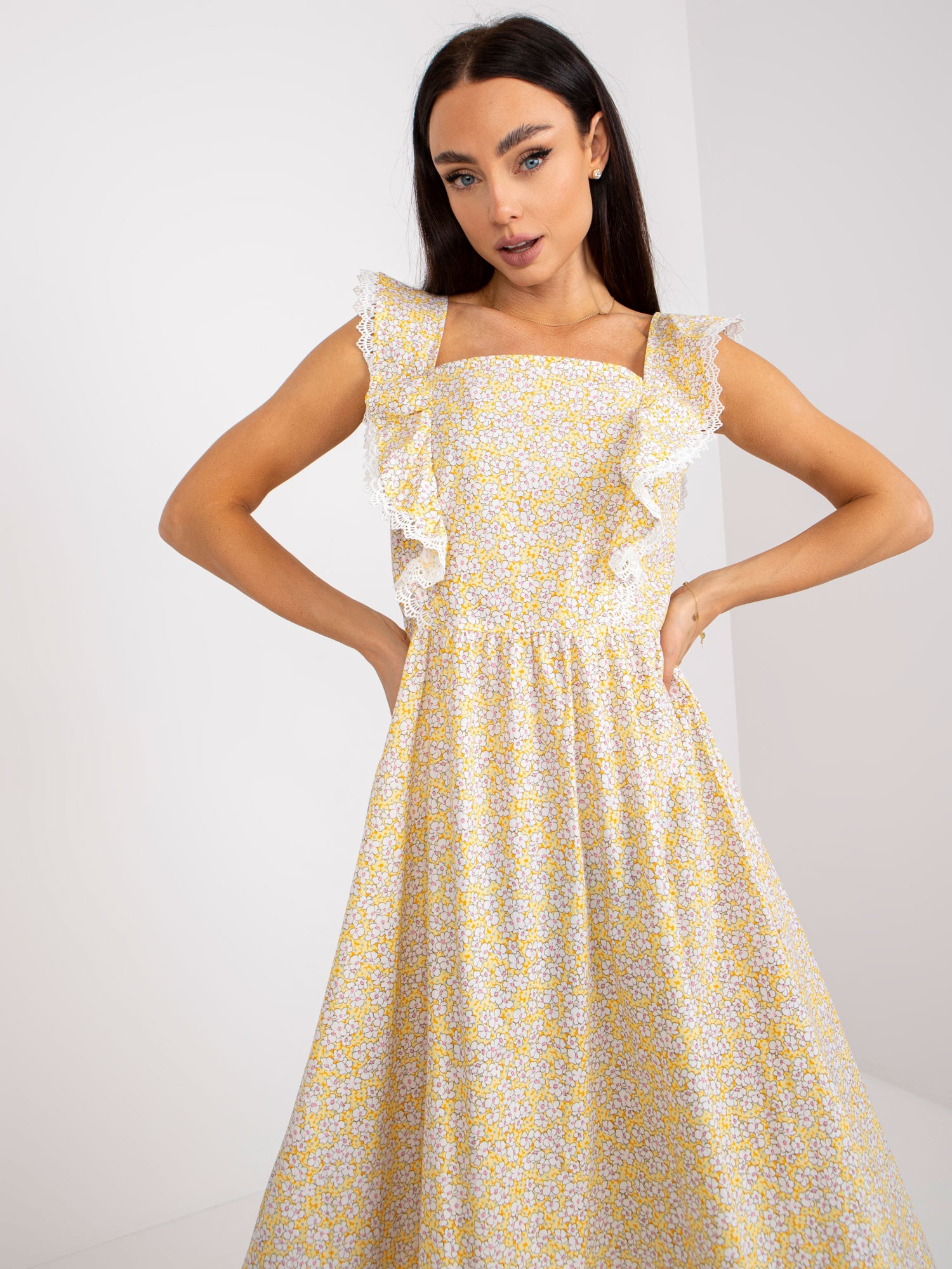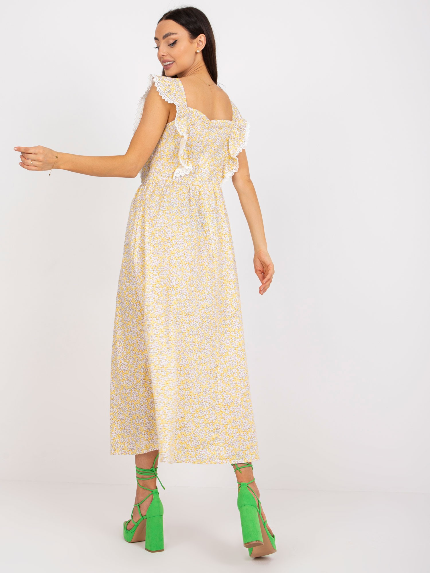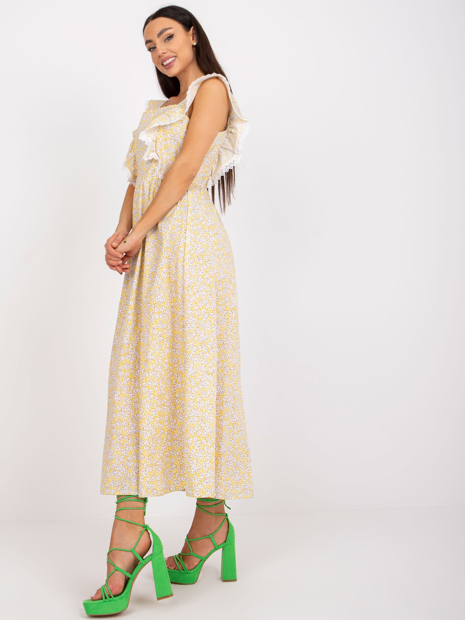 Wymiary sukienki w rozmiarze S mierzone na płasko: szerokość pod pachami – 42 cm, długość całkowita – 129 cm .