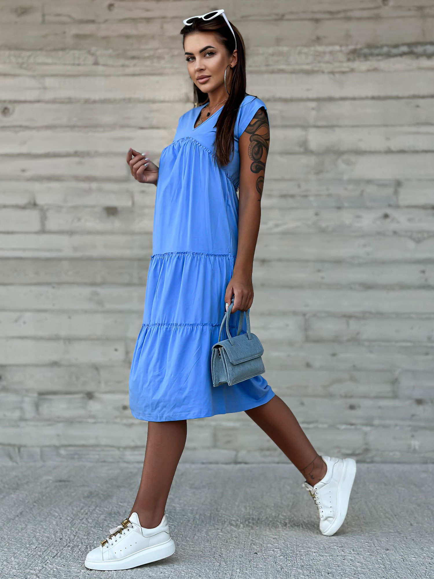 Niebieska sukienka z falbaną z bawełny MAYFLIES.