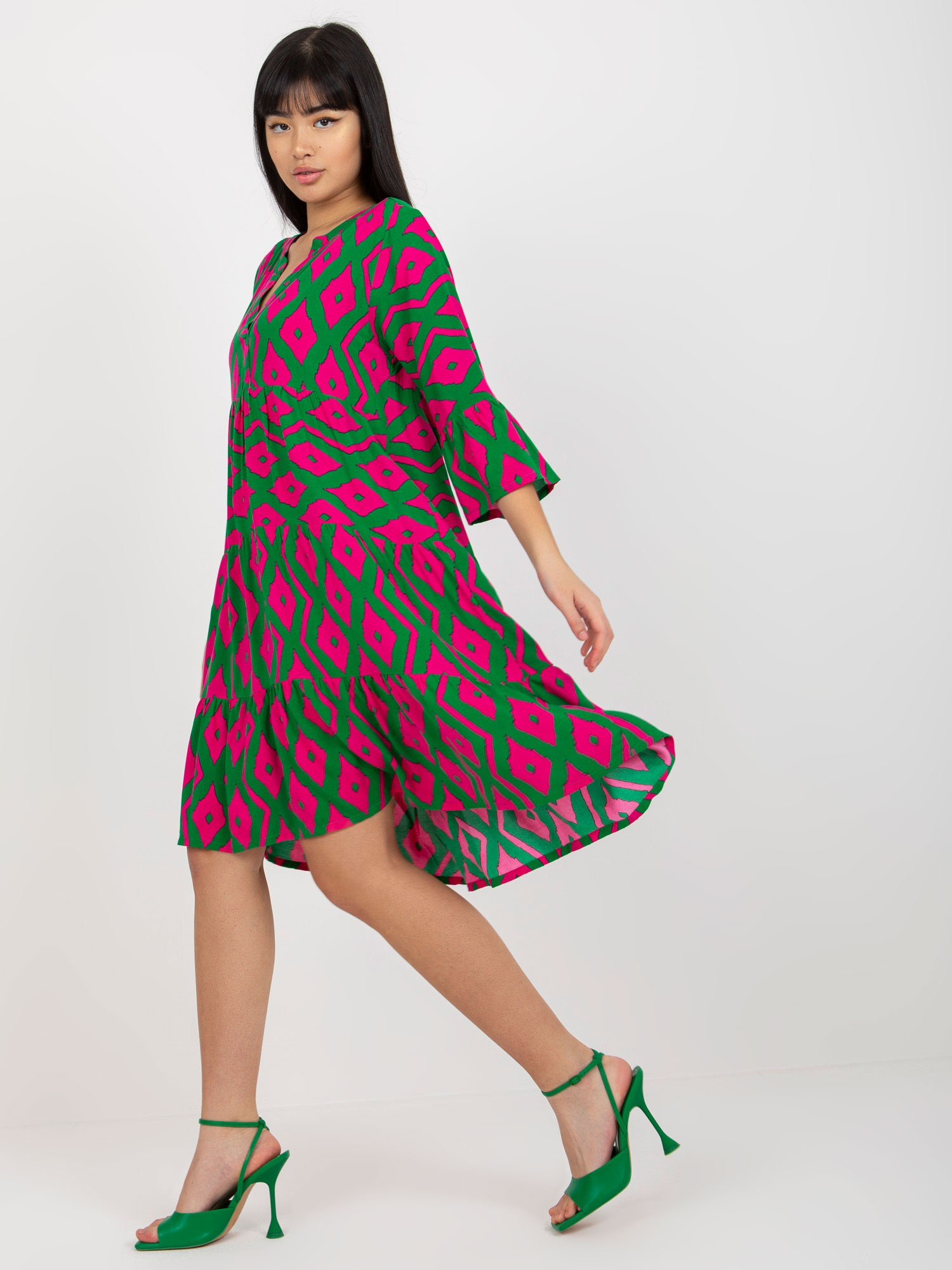 Zielona damska sukienka z printam i falbaną SUBLEVEL .
