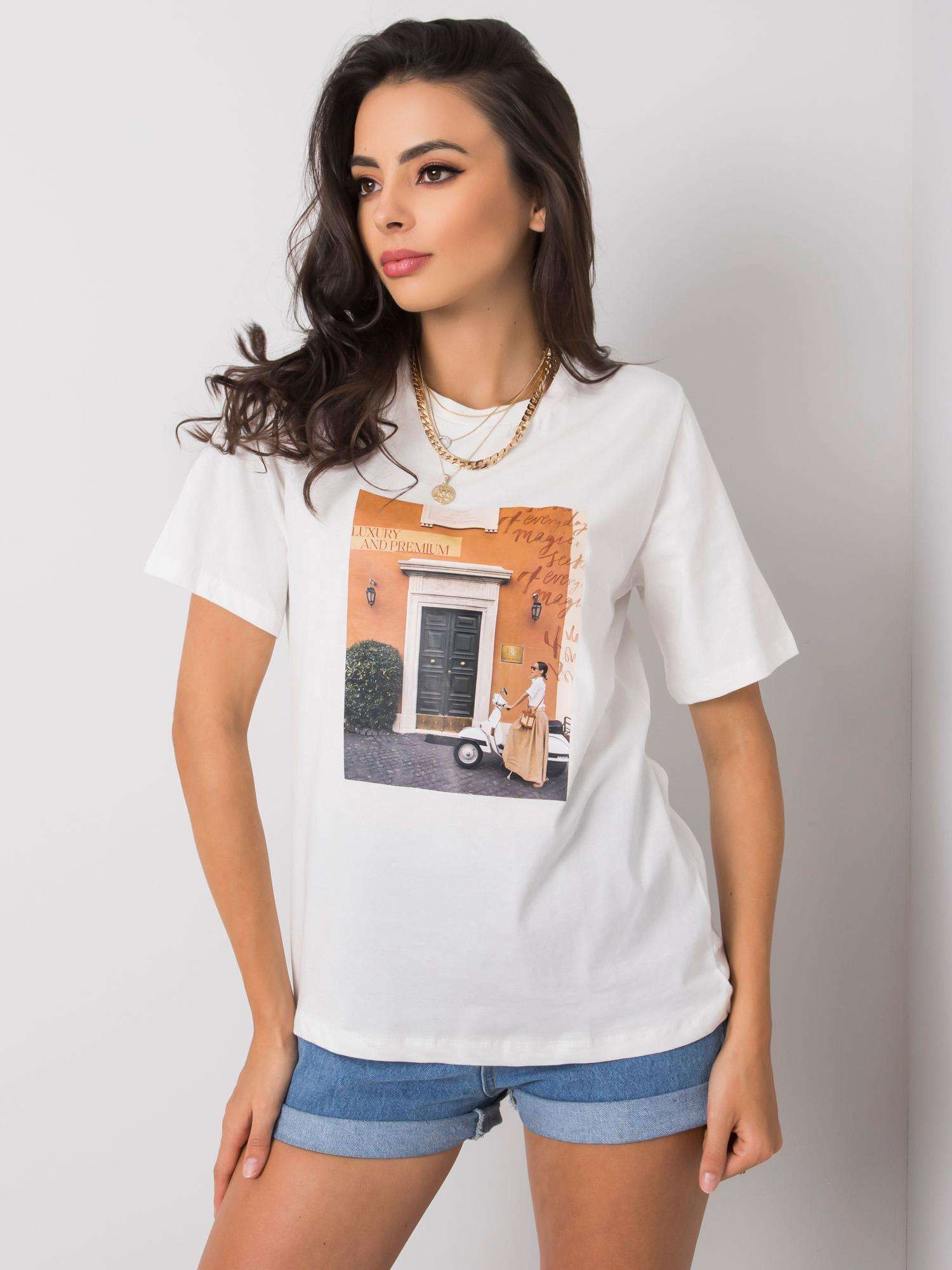 Biały t-shirt z modowym nadrukiem.