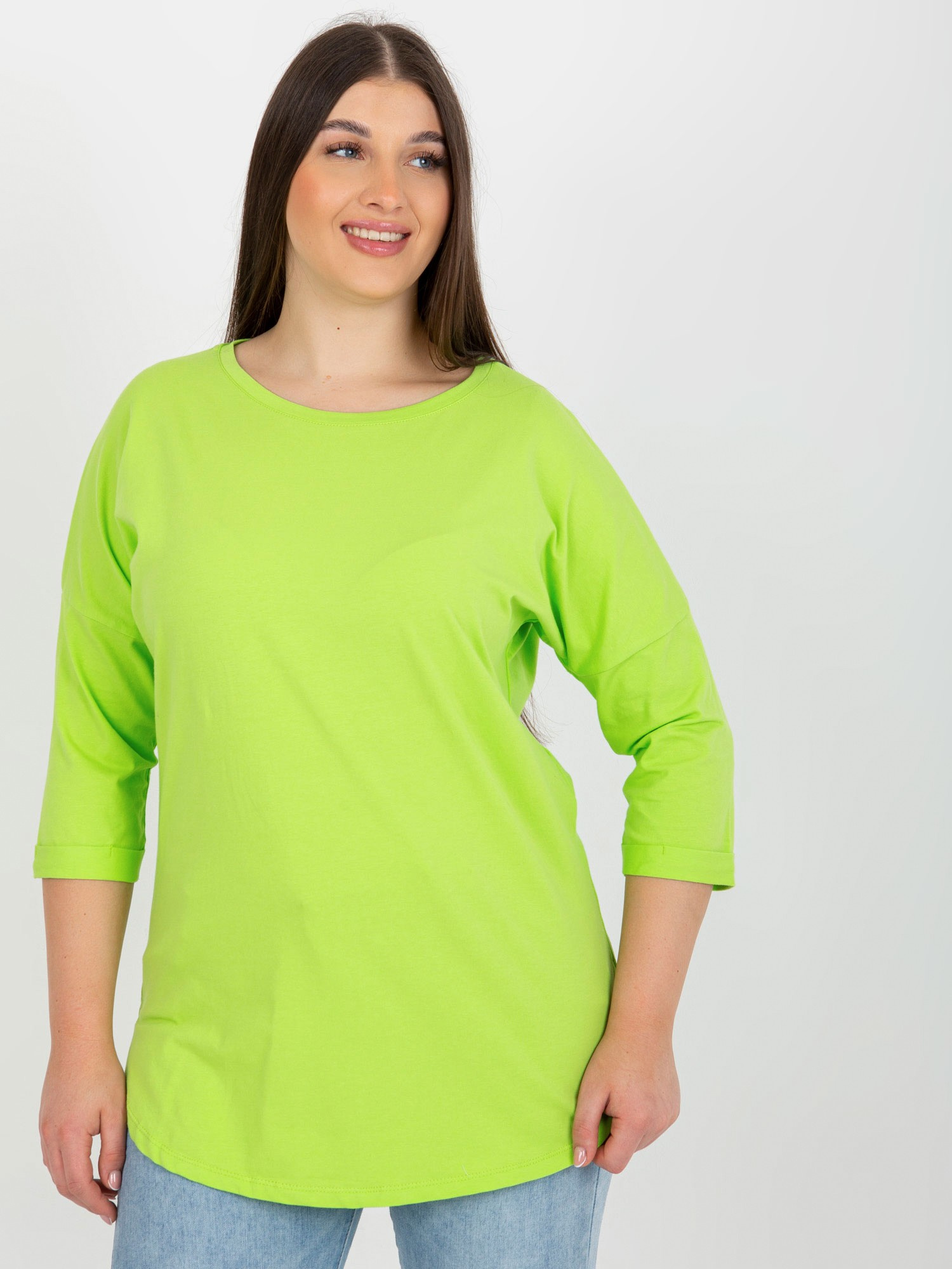 Limonkowa bluzka plus size basic z rękawem 3/4 .